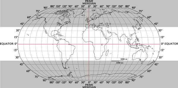 Anyone who lives North of the 37th Northern Parallel and South of the 37th Southern Parallel is probably Vitamin D deficient. These are indicated by the grey areas on the maps.