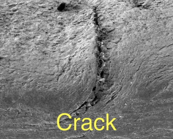 See that big crack to the right of the yellow arrow? We’ll zoom in on that crack in the next photo.